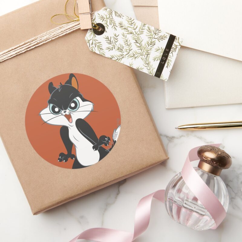 Pussy Foot Angry2 Classic Round Sticker vinyl sticker, waterproof durable collectible sticker for laptop, phone, bottle, bike, notebook, helmet, and accessories.