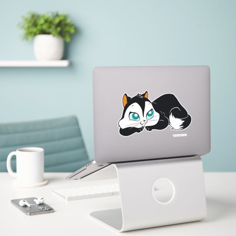 Pussyfoot Cute Kitty Sticker vinyl sticker, waterproof durable collectible sticker for laptop, phone, bottle, bike, notebook, helmet, and accessories.