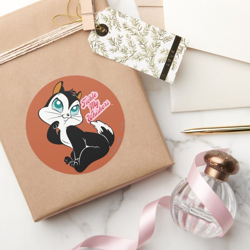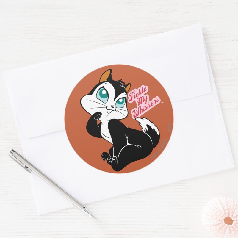 Pussyfoot Tickle My Whiskers Classic Round Sticker vinyl sticker, waterproof durable collectible sticker for laptop, phone, bottle, bike, notebook, helmet, and accessories.