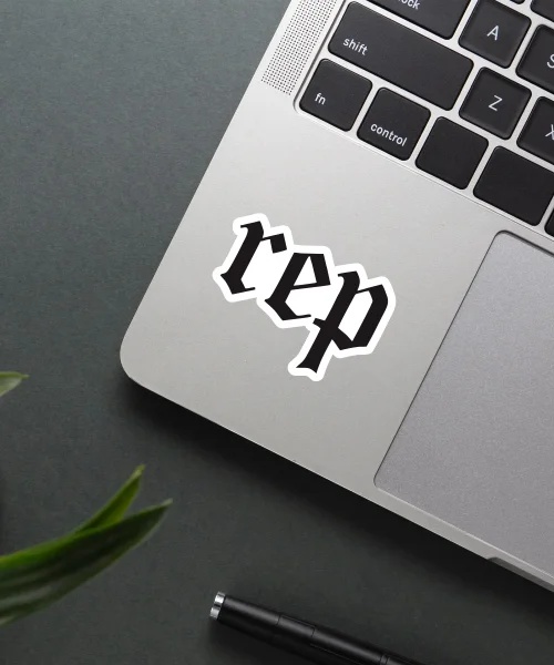 REP Sticker vinyl sticker, waterproof durable collectible sticker for laptop, phone, bottle, bike, notebook, helmet, and accessories.
