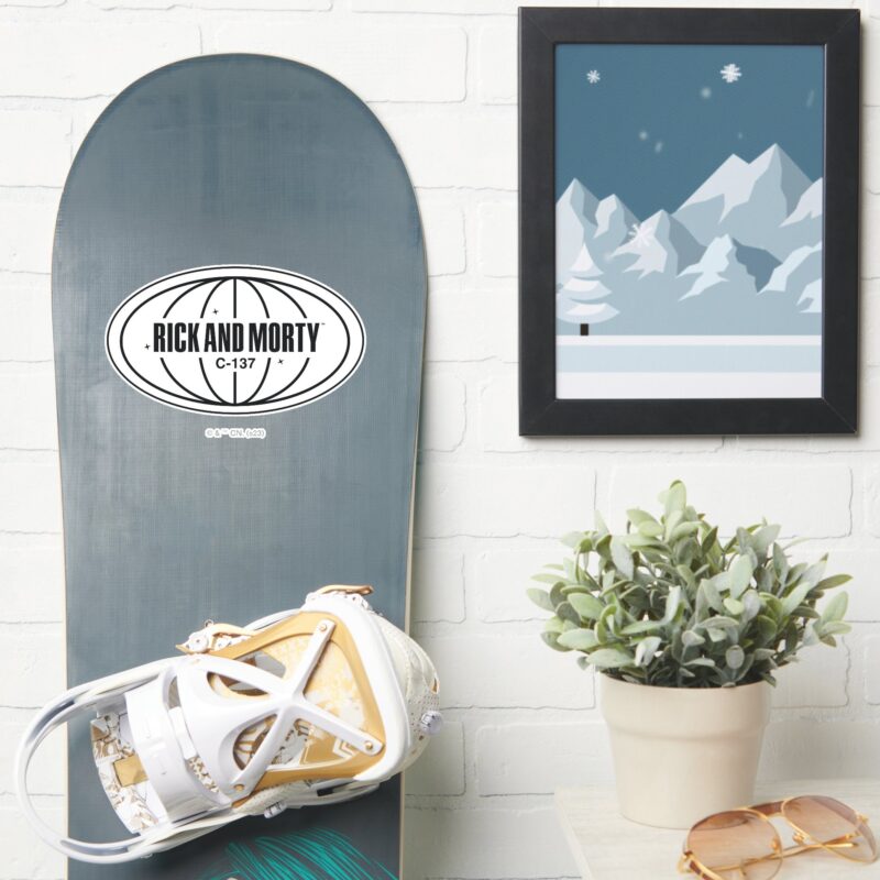 Retro Rick And Morty C 137 Dimension Badge Sticker vinyl sticker, waterproof durable collectible sticker for laptop, phone, bottle, bike, notebook, helmet, and accessories.