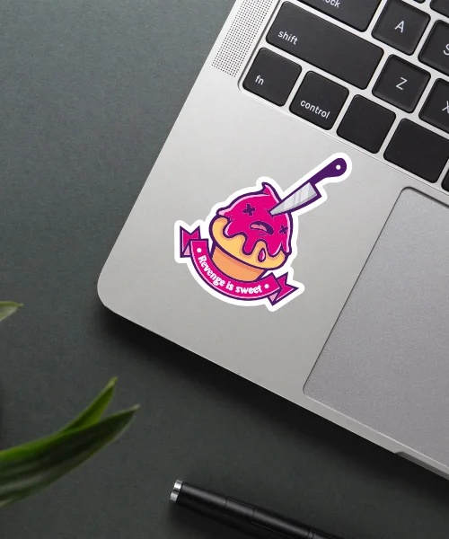 Revenge Is Sweet vinyl sticker, waterproof durable collectible sticker for laptop, phone, bottle, bike, notebook, helmet, and accessories.