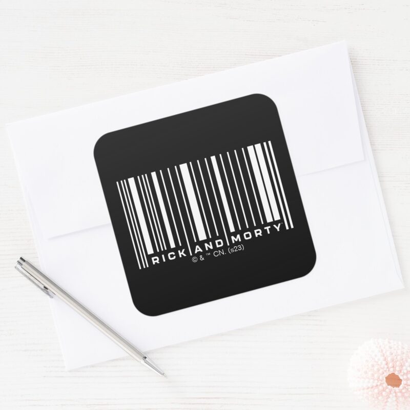 Rick And Morty Bar Code Graphic Square Sticker vinyl sticker, waterproof durable collectible sticker for laptop, phone, bottle, bike, notebook, helmet, and accessories.