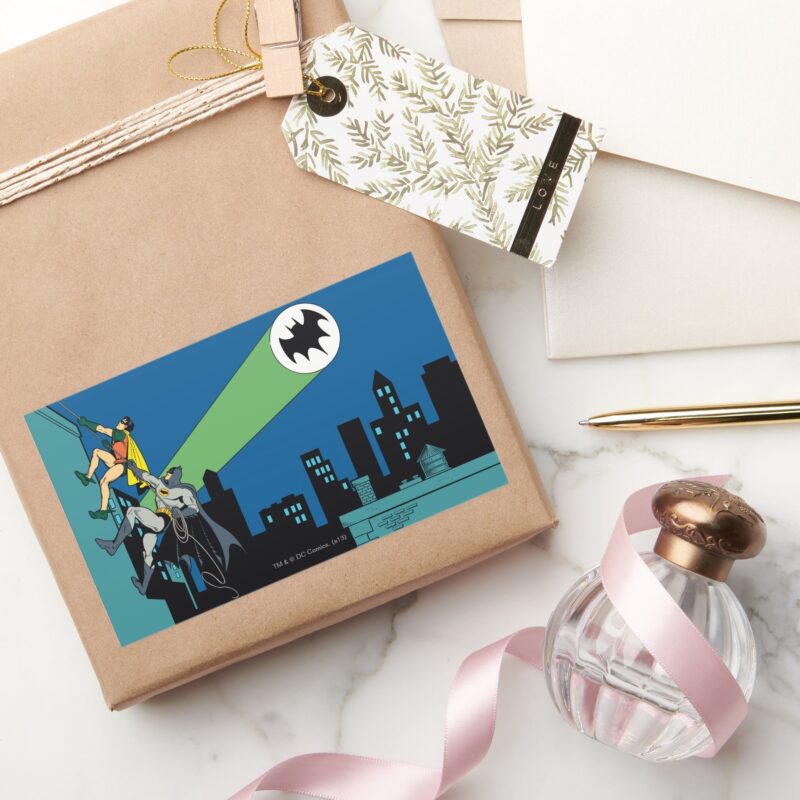 Robin And Batman Climb Rectangular Sticker vinyl sticker, waterproof durable collectible sticker for laptop, phone, bottle, bike, notebook, helmet, and accessories.