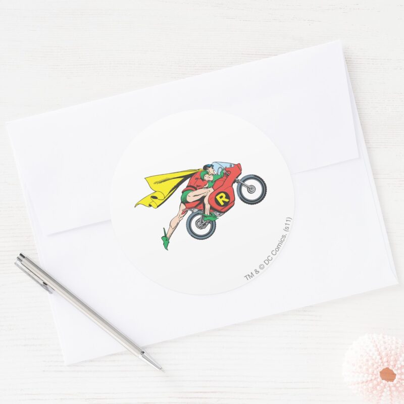 Robin Cycle Classic Round Sticker vinyl sticker, waterproof durable collectible sticker for laptop, phone, bottle, bike, notebook, helmet, and accessories.