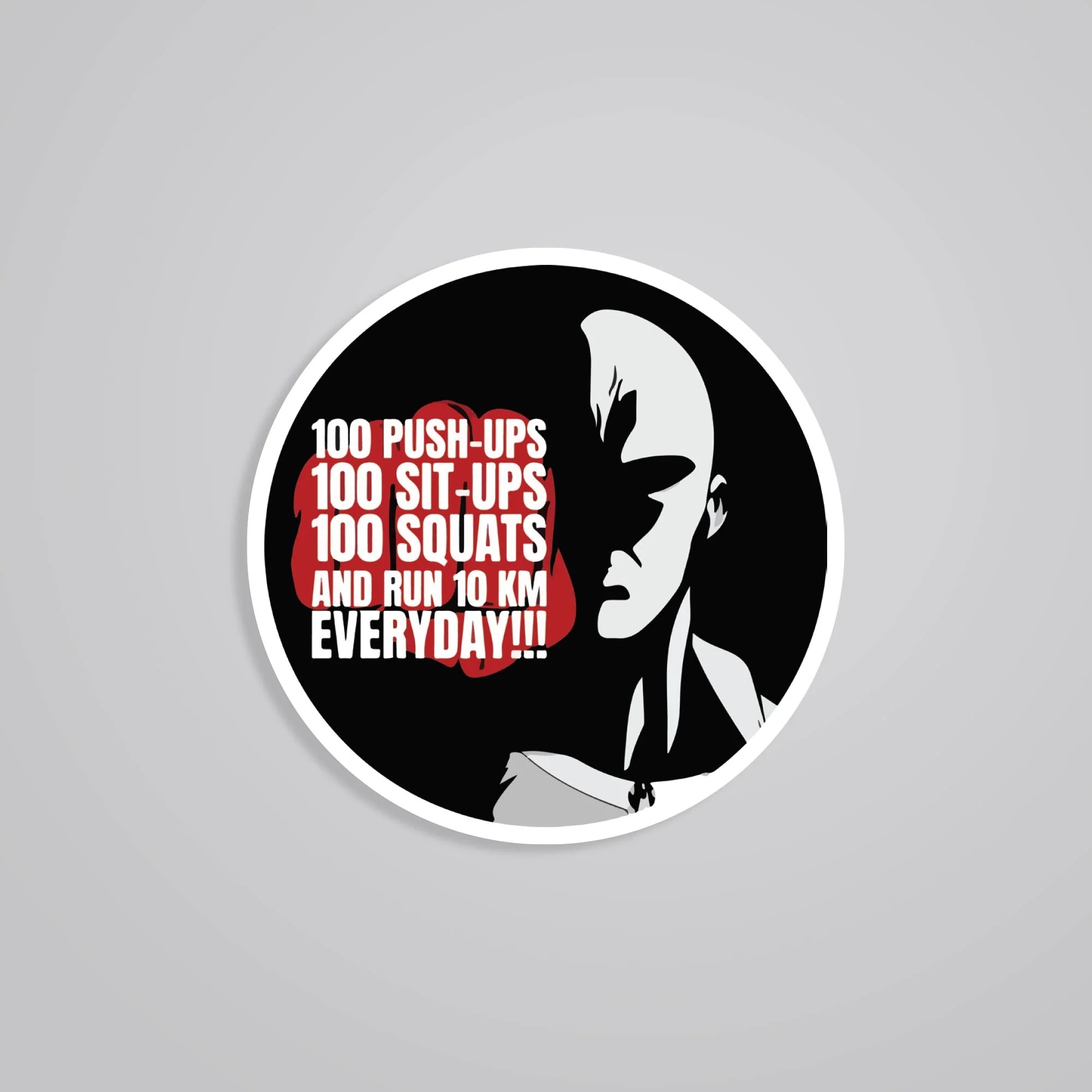 Saitama Training Routine Anime Stickers vinyl sticker, waterproof durable collectible sticker for laptop, phone, bottle, bike, notebook, helmet, and accessories.