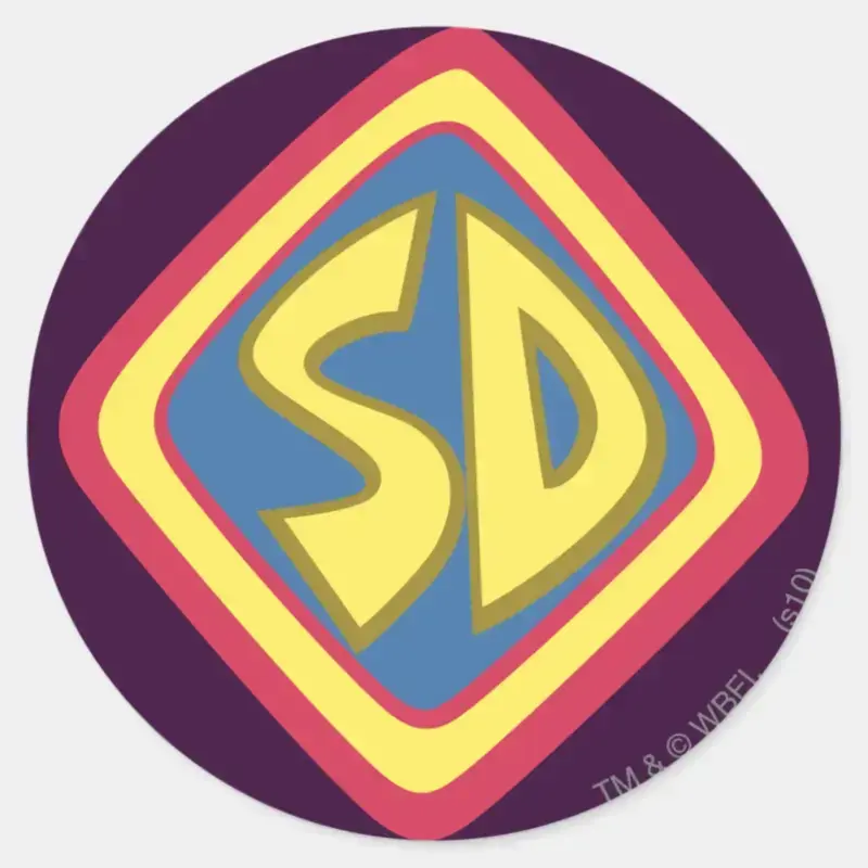 Scooby Doo SD Icon Classic Round Sticker vinyl sticker, waterproof durable collectible sticker for laptop, phone, bottle, bike, notebook, helmet, and accessories.