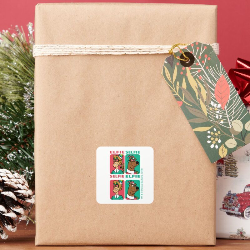 Scooby Doo Shaggy Elfie Selfie Square Sticker vinyl sticker, waterproof durable collectible sticker for laptop, phone, bottle, bike, notebook, helmet, and accessories.
