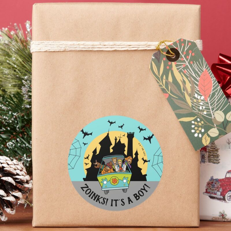 Scooby Doo Spooktacular Halloween Baby Shower Classic Round Sticker vinyl sticker, waterproof durable collectible sticker for laptop, phone, bottle, bike, notebook, helmet, and accessories.