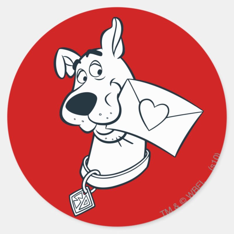 Scooby Valentines Day Classic Round Sticker vinyl sticker, waterproof durable collectible sticker for laptop, phone, bottle, bike, notebook, helmet, and accessories.