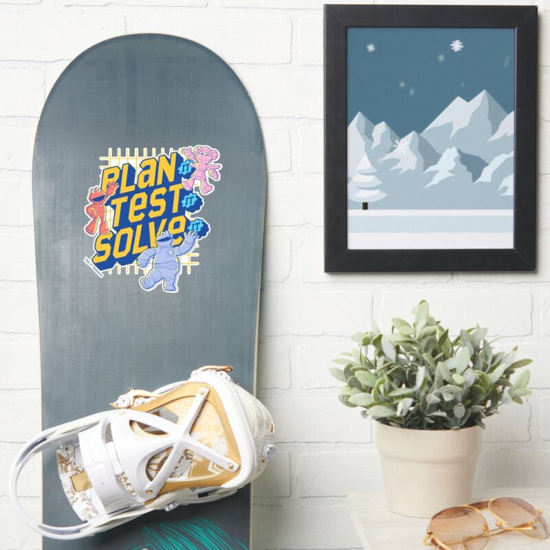 Sesame Street Mecha Builders Plan Test Solve Sticker vinyl sticker, waterproof durable collectible sticker for laptop, phone, bottle, bike, notebook, helmet, and accessories.