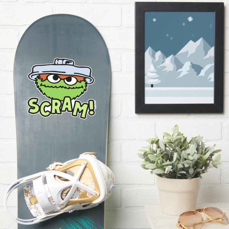 Sesame Street Oscar The Grouch Scram Sticker vinyl sticker, waterproof durable collectible sticker for laptop, phone, bottle, bike, notebook, helmet, and accessories.