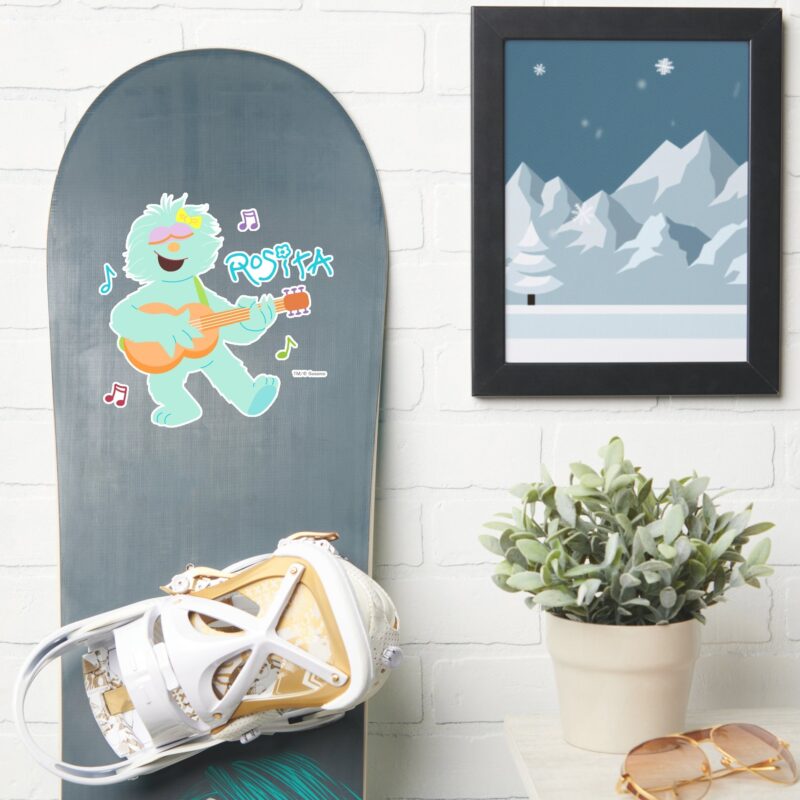 Sesame Street Rosita Playing Guitar Sticker vinyl sticker, waterproof durable collectible sticker for laptop, phone, bottle, bike, notebook, helmet, and accessories.