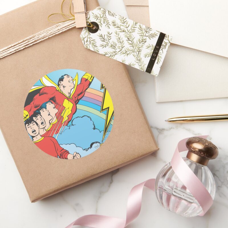 Decorate your laptop, water bottle, or notebook with this vibrant SHAZAM Billy Batson Classic Round Sticker . Made from waterproof vinyl, it’s perfect for anime fans who love bold designs.