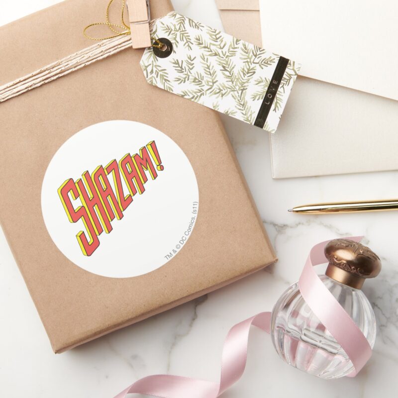 Shazam Logo Red Yellow Classic Round Sticker vinyl sticker, waterproof durable collectible sticker for laptop, phone, bottle, bike, notebook, helmet, and accessories.