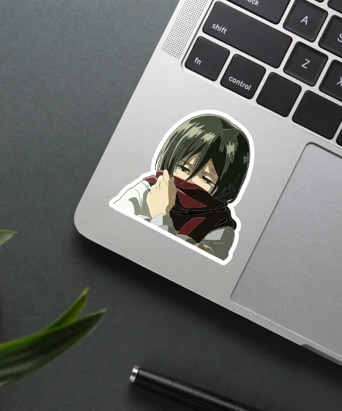 Shy Mikasa Ackerman Sticker vinyl sticker, waterproof durable collectible sticker for laptop, phone, bottle, bike, notebook, helmet, and accessories.