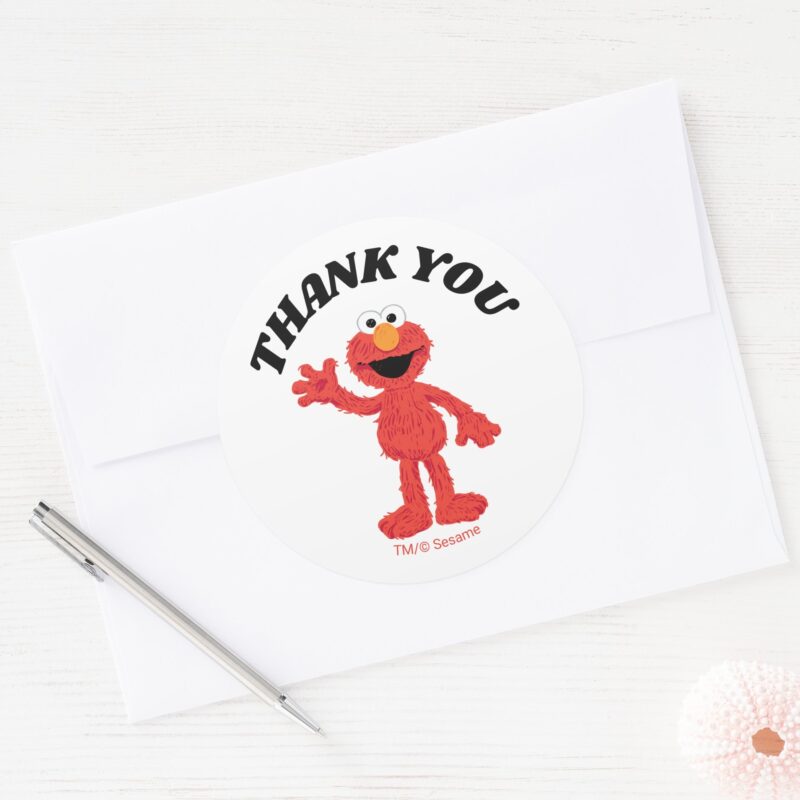 Simple Elmo 1st Birthday Thank You Classic Round Sticker vinyl sticker, waterproof durable collectible sticker for laptop, phone, bottle, bike, notebook, helmet, and accessories.