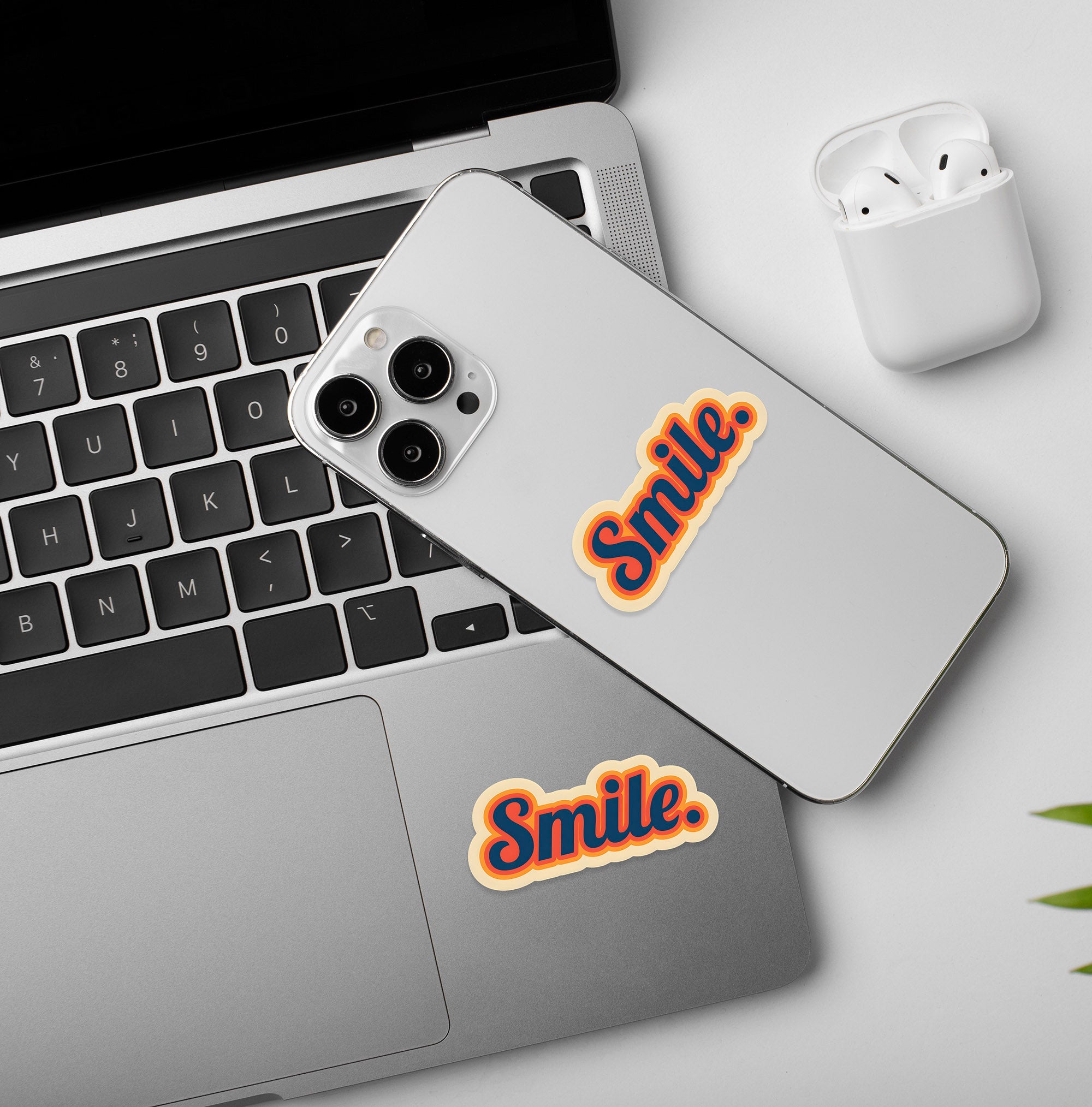 Smile Sticker vinyl sticker, waterproof durable collectible sticker for laptop, phone, bottle, bike, notebook, helmet, and accessories.