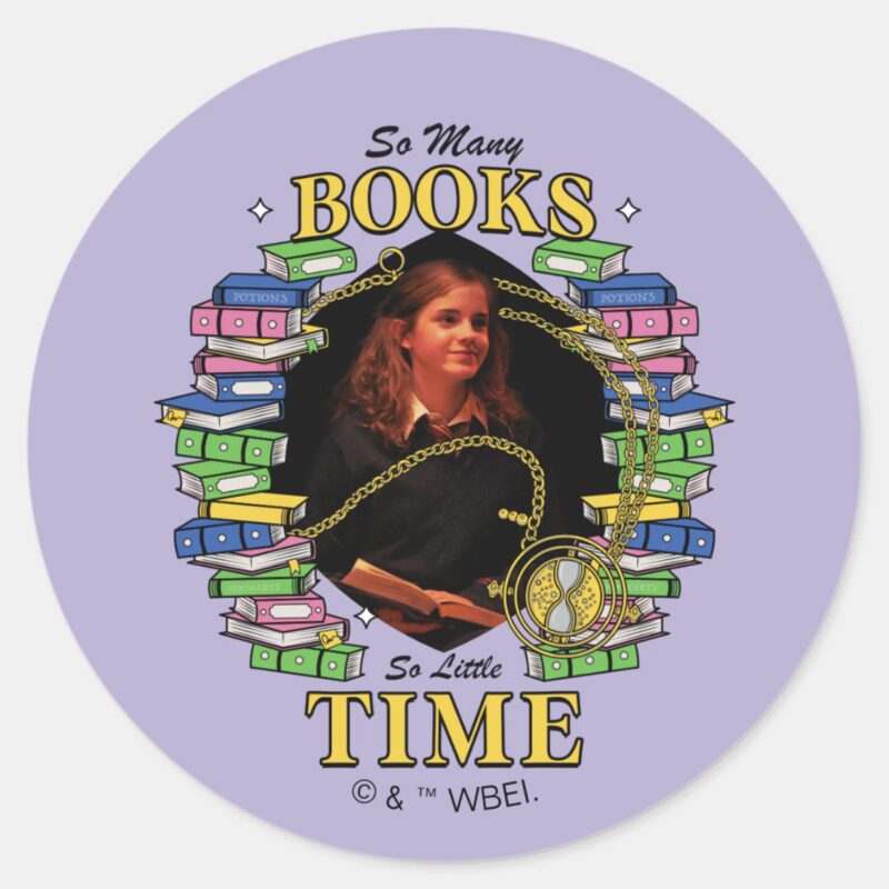 So Many Books So Little Time Classic Round Sticker vinyl sticker, waterproof durable collectible sticker for laptop, phone, bottle, bike, notebook, helmet, and accessories.