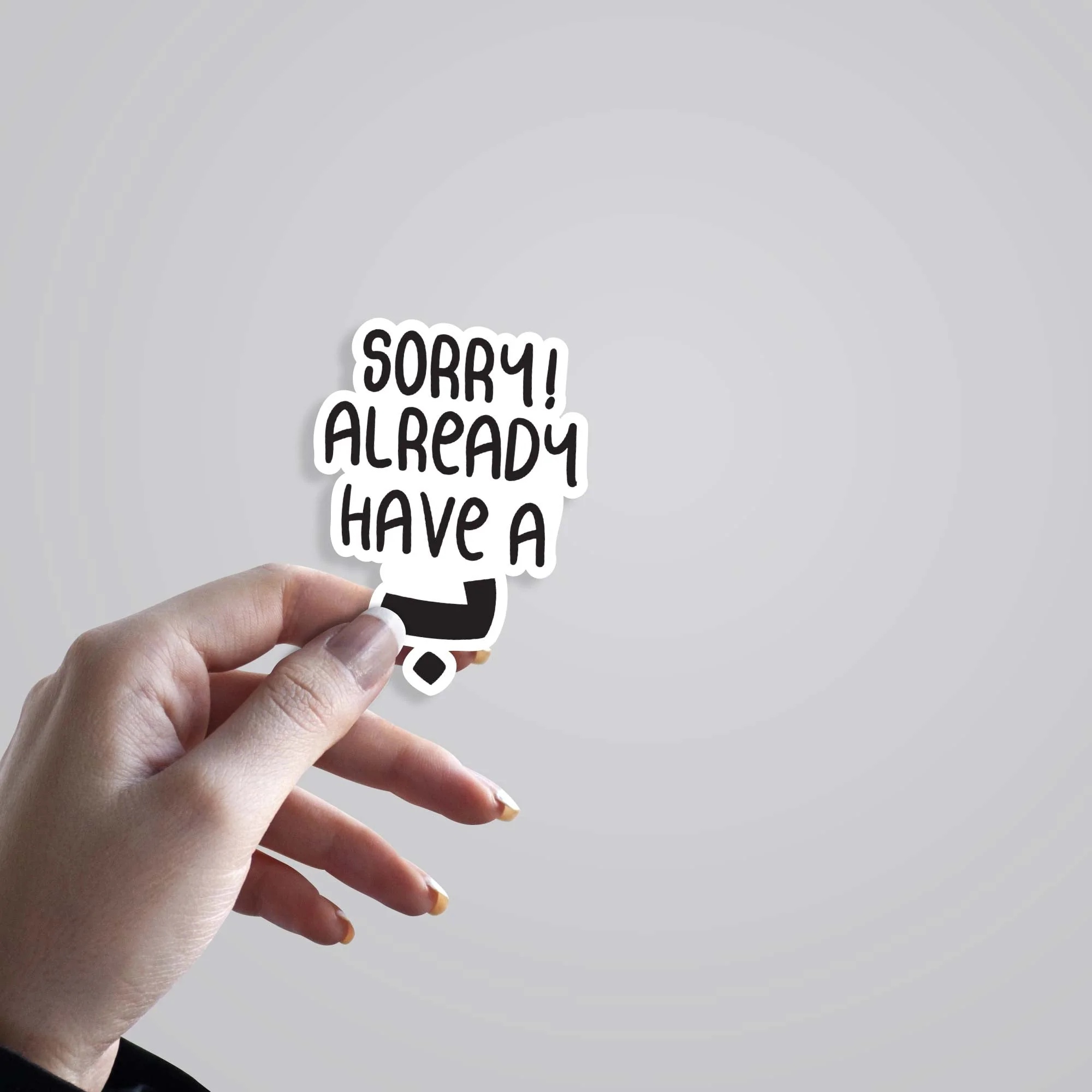 Sorry Already Have A Bae Witty Stickers vinyl sticker, waterproof durable collectible sticker for laptop, phone, bottle, bike, notebook, helmet, and accessories.
