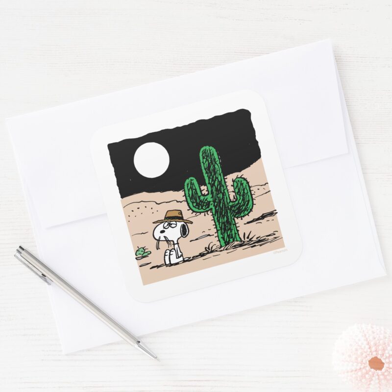 Spike In A Moonlit Desert Square Sticker vinyl sticker, waterproof durable collectible sticker for laptop, phone, bottle, bike, notebook, helmet, and accessories.