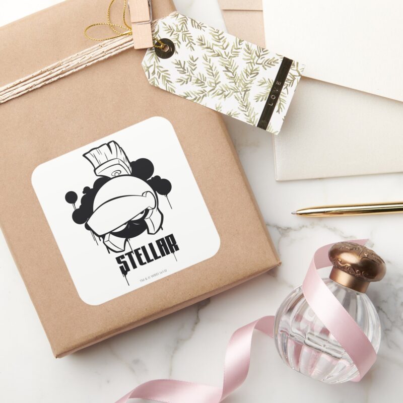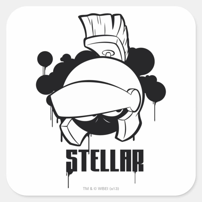 Stellar MARVIN THE MARTIAN™ Square Sticker vinyl sticker, waterproof durable collectible sticker for laptop, phone, bottle, bike, notebook, helmet, and accessories.