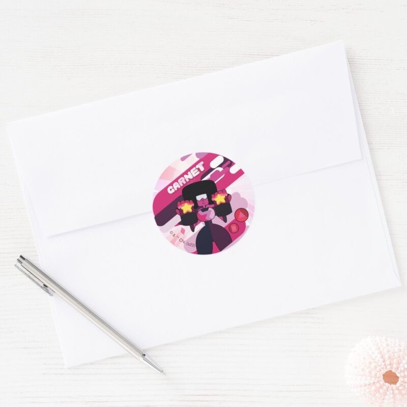 Steven Universe Garnet Character Graphic Classic Round Sticker vinyl sticker, waterproof durable collectible sticker for laptop, phone, bottle, bike, notebook, helmet, and accessories.