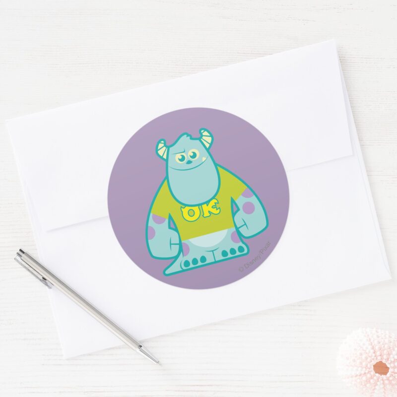 Sulley 2 Classic Round Sticker vinyl sticker, waterproof durable collectible sticker for laptop, phone, bottle, bike, notebook, helmet, and accessories.