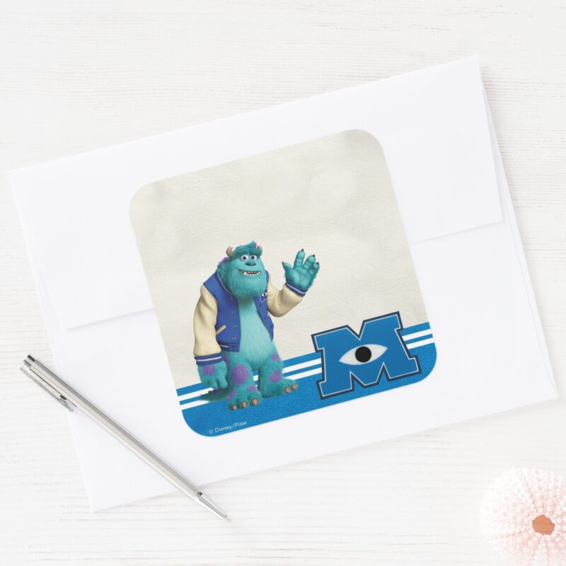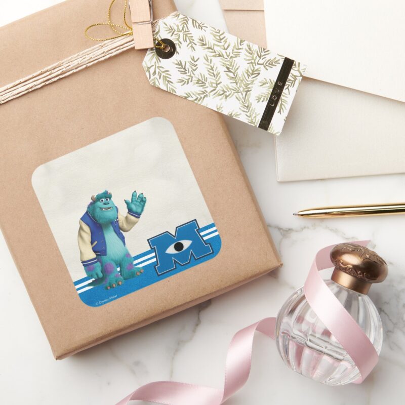 Sulley Waving Square Sticker vinyl sticker, waterproof durable collectible sticker for laptop, phone, bottle, bike, notebook, helmet, and accessories.