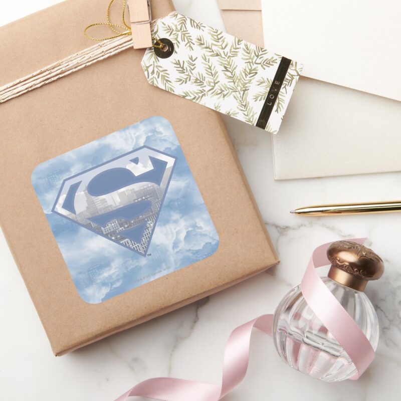 Superman S Shield Light Blue City Logo Square Sticker vinyl sticker, waterproof durable collectible sticker for laptop, phone, bottle, bike, notebook, helmet, and accessories.