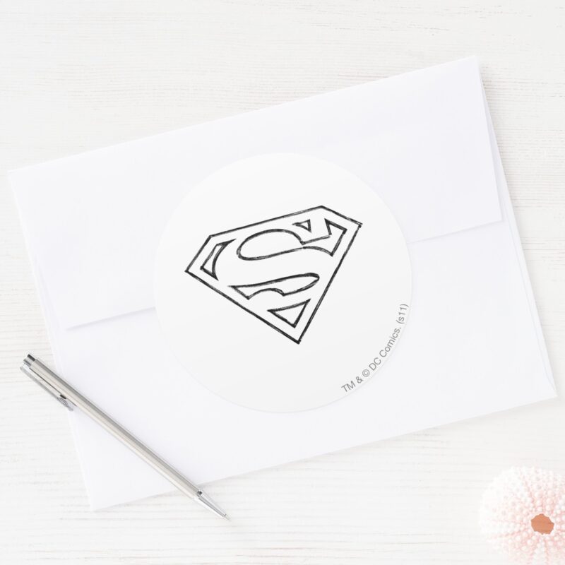 Superman S Shield Simple Black Outline Logo Classic Round Sticker