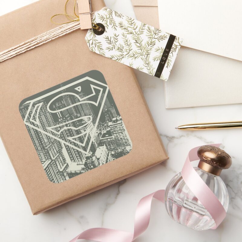 Superman Stylized Green Metropolis Logo Square Sticker vinyl sticker, waterproof durable collectible sticker for laptop, phone, bottle, bike, notebook, helmet, and accessories.