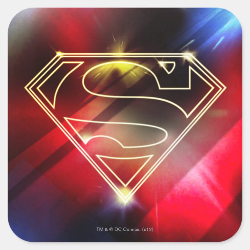 Superman Stylized Shiny Yellow Outline Logo Square Sticker