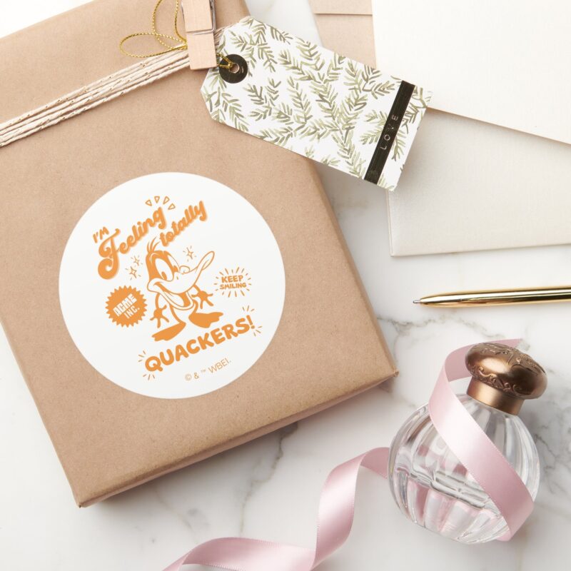 Tasty Retro DAFFY DUCK™ Classic Round Sticker vinyl sticker, waterproof durable collectible sticker for laptop, phone, bottle, bike, notebook, helmet, and accessories.