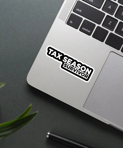 Tax Season Survivor Sticker vinyl sticker, waterproof durable collectible sticker for laptop, phone, bottle, bike, notebook, helmet, and accessories.