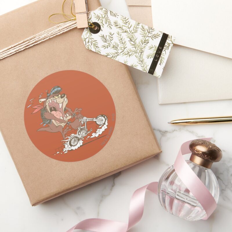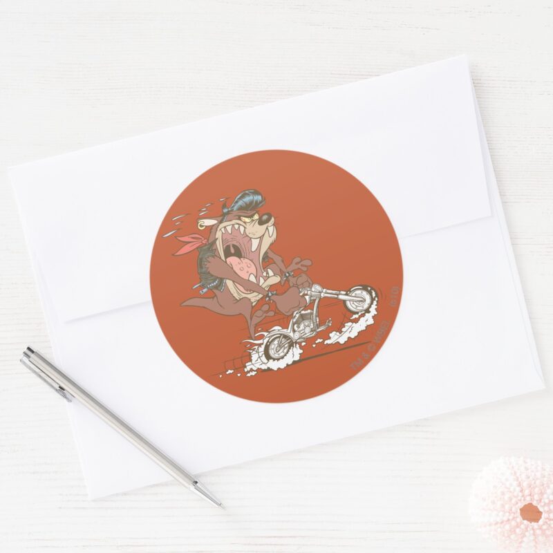 TAZ™ Slick Hog Classic Round Sticker vinyl sticker, waterproof durable collectible sticker for laptop, phone, bottle, bike, notebook, helmet, and accessories.