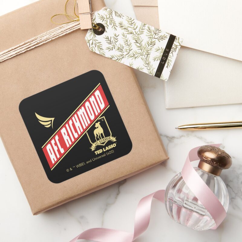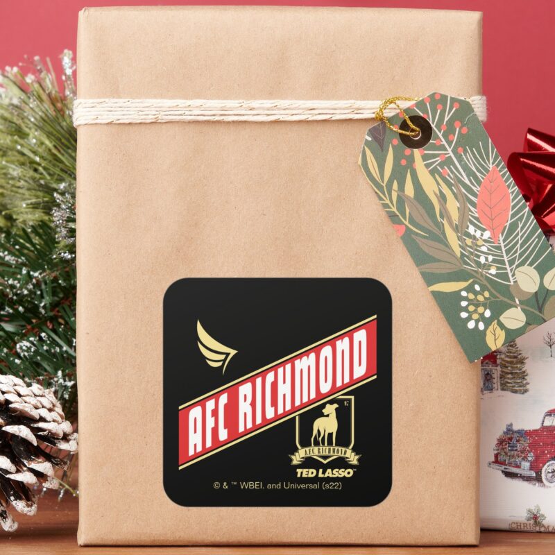 Ted Lasso AFC Richmond Athletic Banner Square Sticker vinyl sticker, waterproof durable collectible sticker for laptop, phone, bottle, bike, notebook, helmet, and accessories.