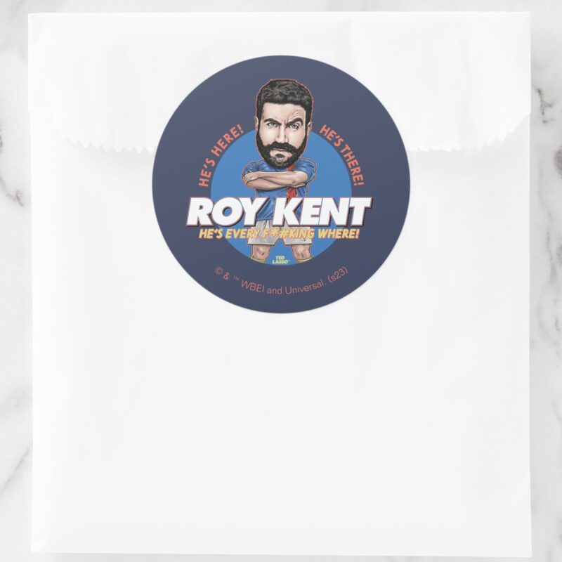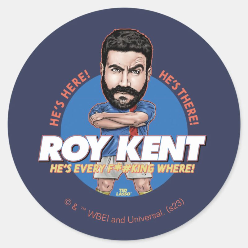 Ted Lasso Roy Kent Bobblehead Classic Round Sticker vinyl sticker, waterproof durable collectible sticker for laptop, phone, bottle, bike, notebook, helmet, and accessories.