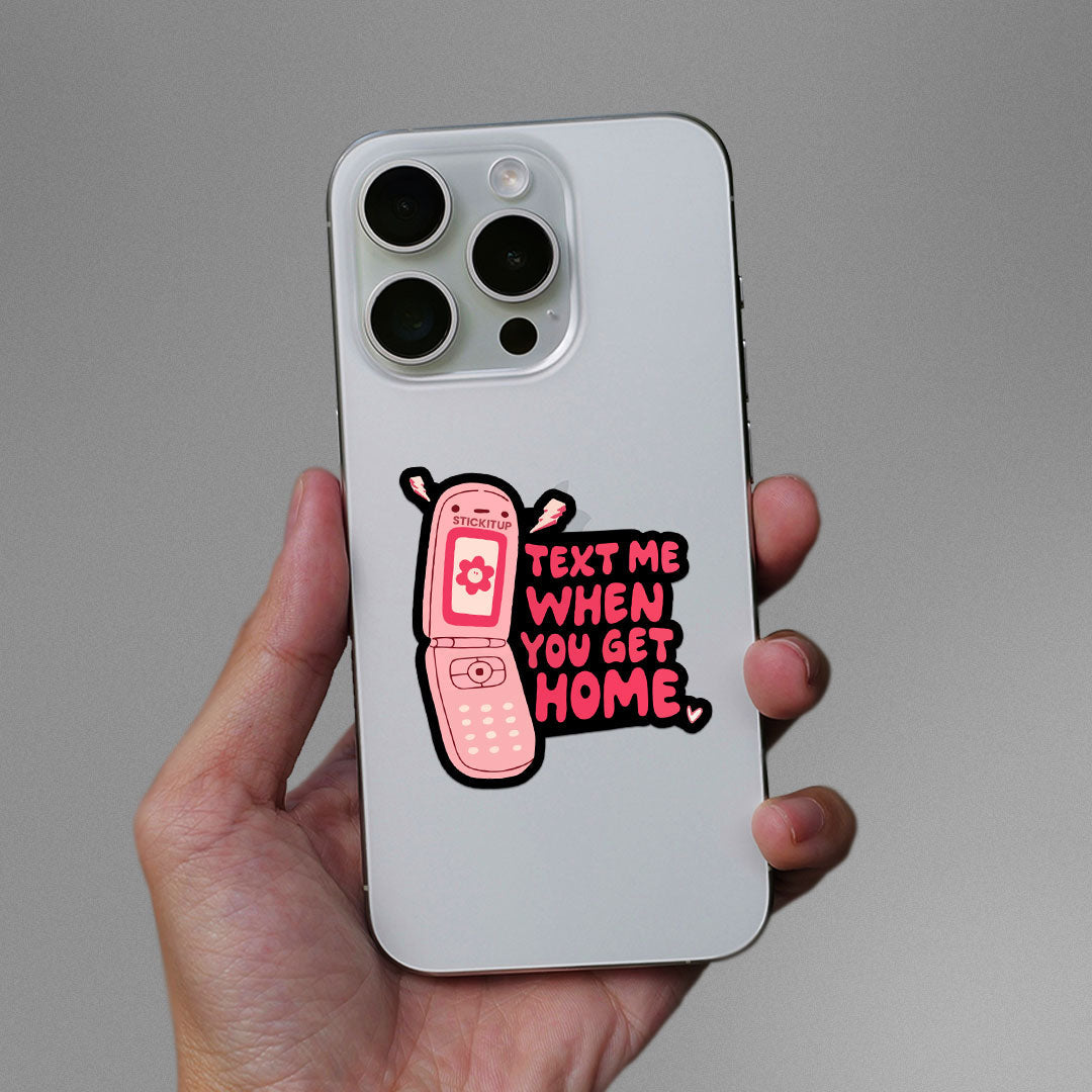 Text Me When You Get Home Sticker vinyl sticker, waterproof durable collectible sticker for laptop, phone, bottle, bike, notebook, helmet, and accessories.
