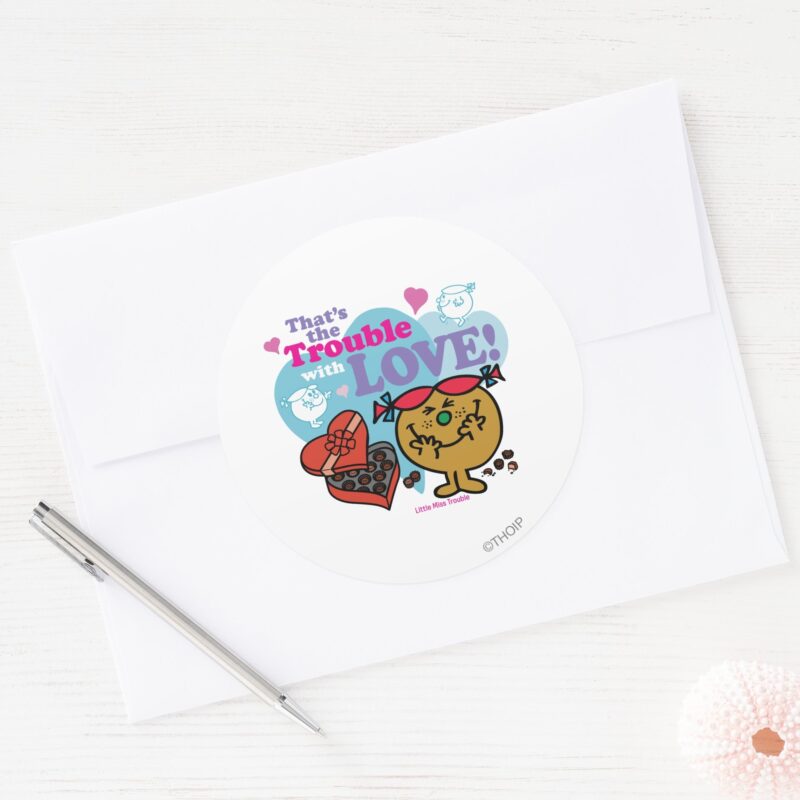 Thats The Trouble With Love Classic Round Sticker vinyl sticker, waterproof durable collectible sticker for laptop, phone, bottle, bike, notebook, helmet, and accessories.