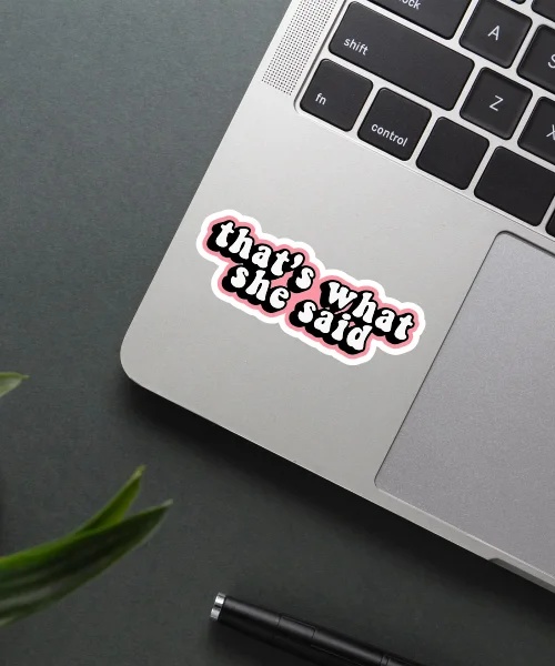 Thats What She Said Sticker vinyl sticker, waterproof durable collectible sticker for laptop, phone, bottle, bike, notebook, helmet, and accessories.