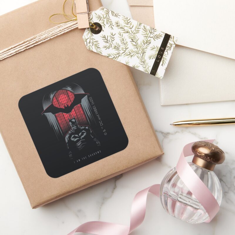 The Batman Window Pane Outline Square Sticker vinyl sticker, waterproof durable collectible sticker for laptop, phone, bottle, bike, notebook, helmet, and accessories.