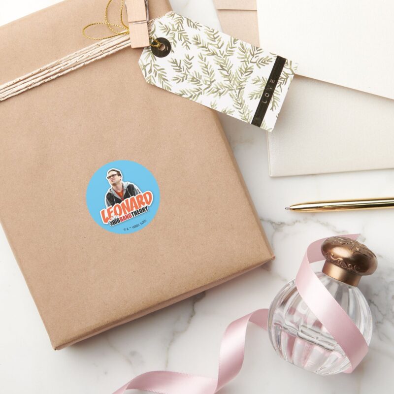 The Big Bang Theory Leonard Classic Round Sticker vinyl sticker, waterproof durable collectible sticker for laptop, phone, bottle, bike, notebook, helmet, and accessories.