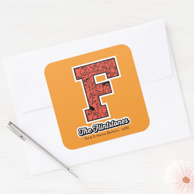 The Flintstones Collegiate Style Monogram Square Sticker vinyl sticker, waterproof durable collectible sticker for laptop, phone, bottle, bike, notebook, helmet, and accessories.