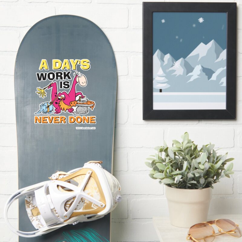 The Flintstones Dino Cleaning House Sticker vinyl sticker, waterproof durable collectible sticker for laptop, phone, bottle, bike, notebook, helmet, and accessories.