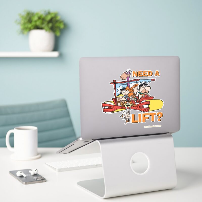 The Flintstones Need A Lift Sticker vinyl sticker, waterproof durable collectible sticker for laptop, phone, bottle, bike, notebook, helmet, and accessories.