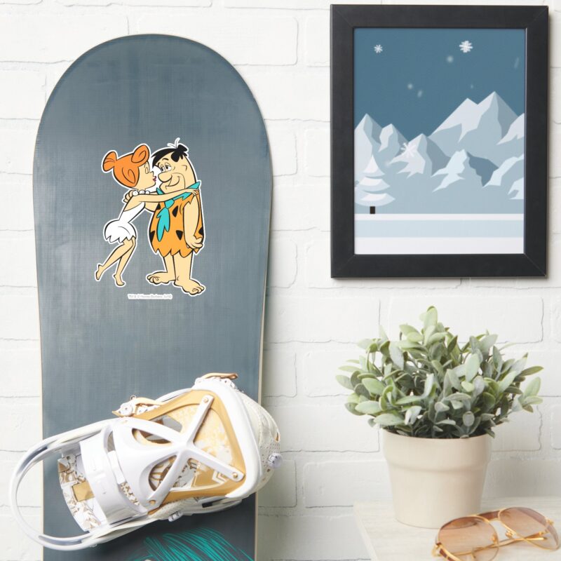 The Flintstones Wilma Kissing Fred Sticker vinyl sticker, waterproof durable collectible sticker for laptop, phone, bottle, bike, notebook, helmet, and accessories.