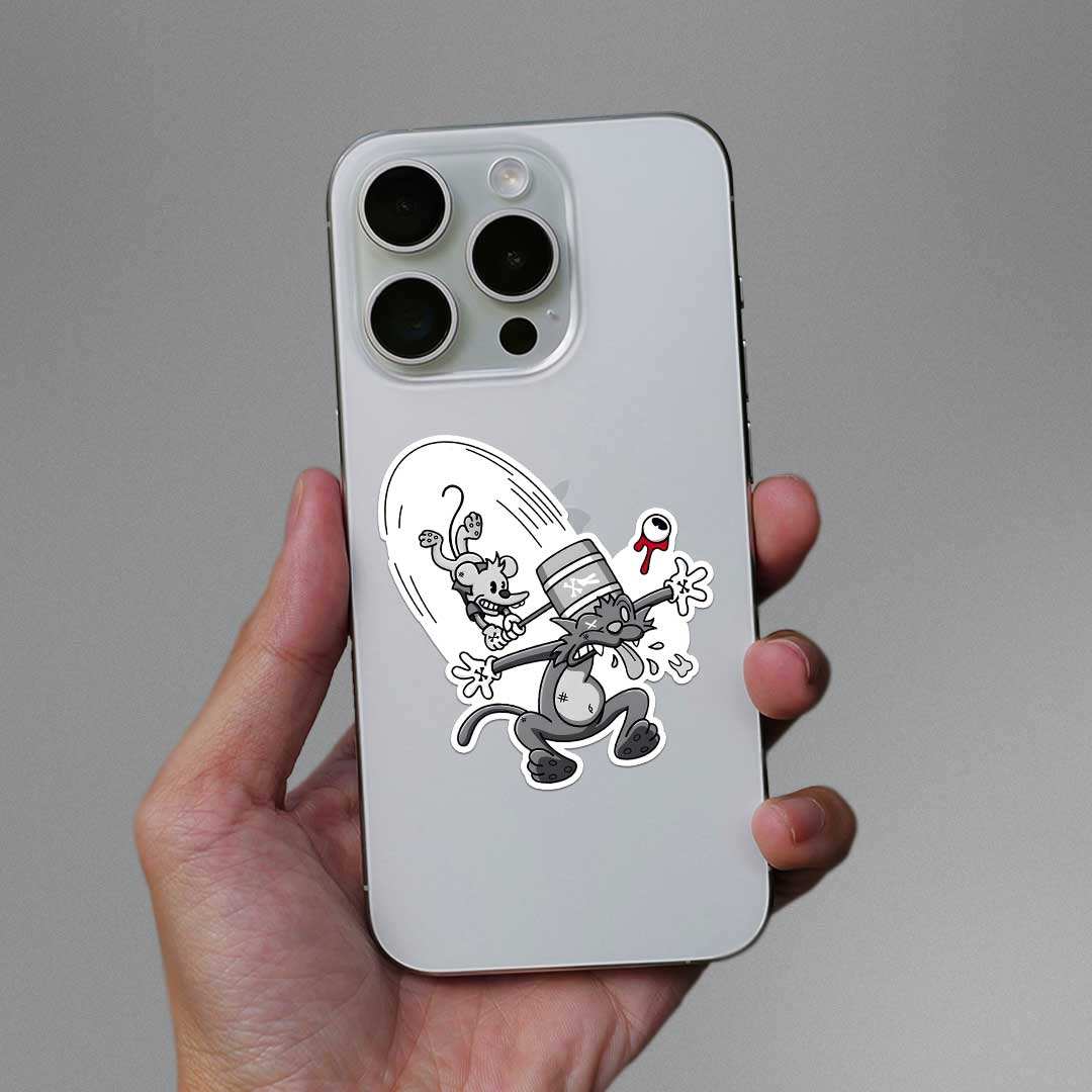 The Itchy Scratchy Sticker vinyl sticker, waterproof durable collectible sticker for laptop, phone, bottle, bike, notebook, helmet, and accessories.