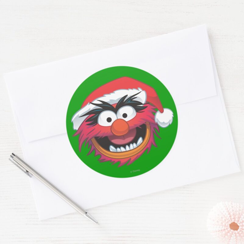 The Muppets Christmas Animal Face Classic Round Sticker vinyl sticker, waterproof durable collectible sticker for laptop, phone, bottle, bike, notebook, helmet, and accessories.