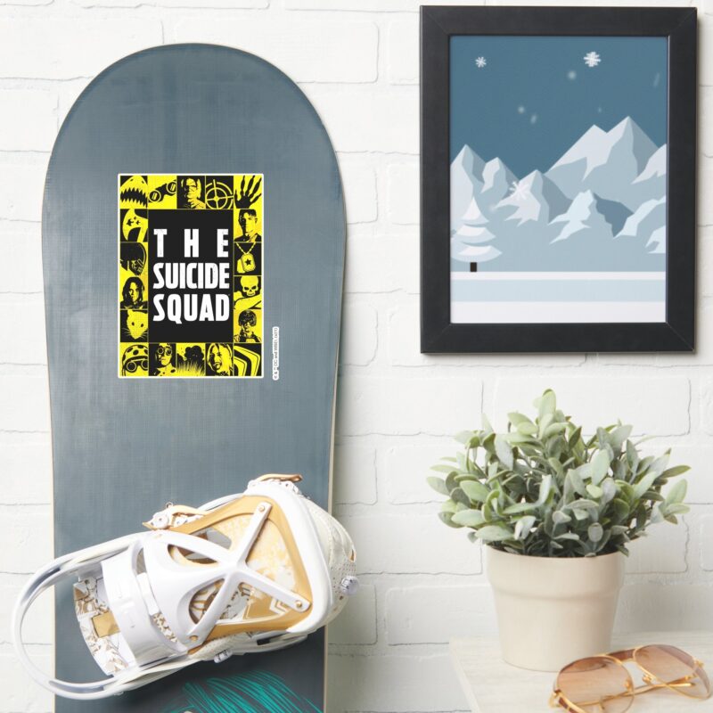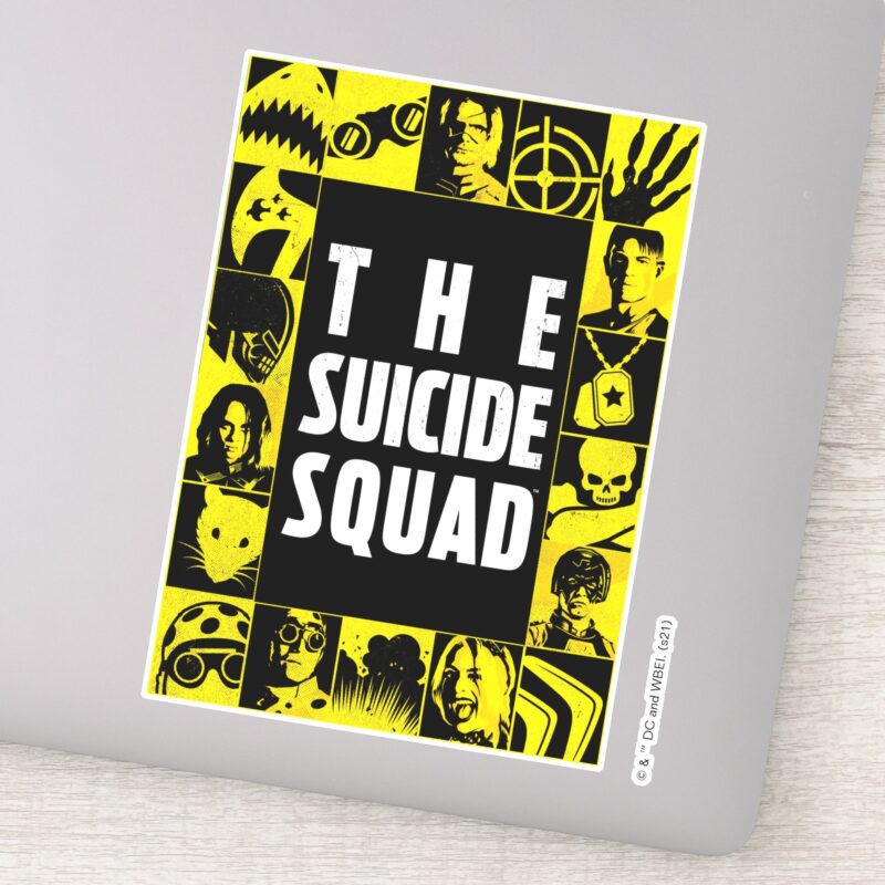 The Suicide Squad Yellow Black Icon Blocks Sticker vinyl sticker, waterproof durable collectible sticker for laptop, phone, bottle, bike, notebook, helmet, and accessories.